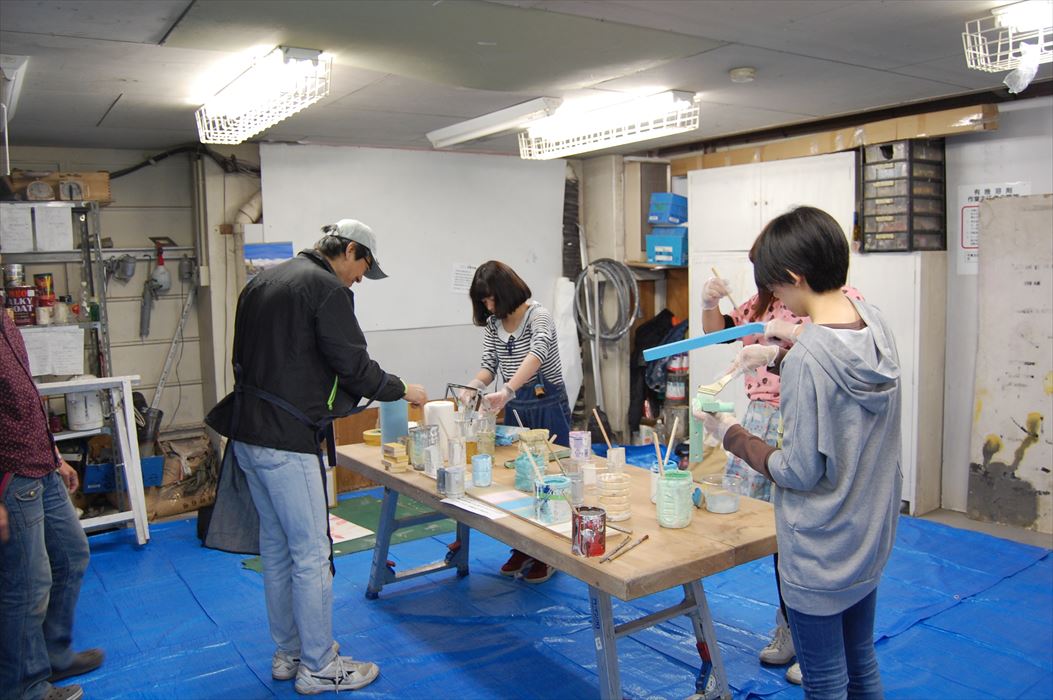 ワークショップを開催中の塗装場にもお邪魔~。