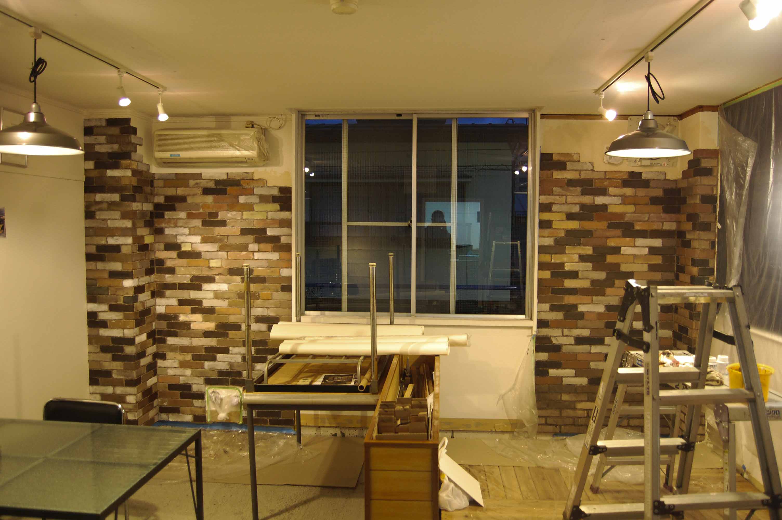 アドイシグロの打ち合わせ室リノベーション、今回のリノベーションの重要な部分のレンガの壁が出来上がってきました!!